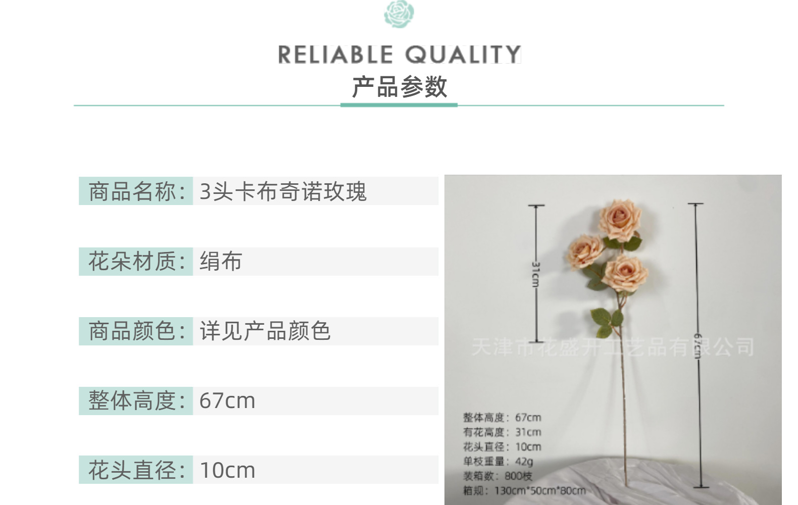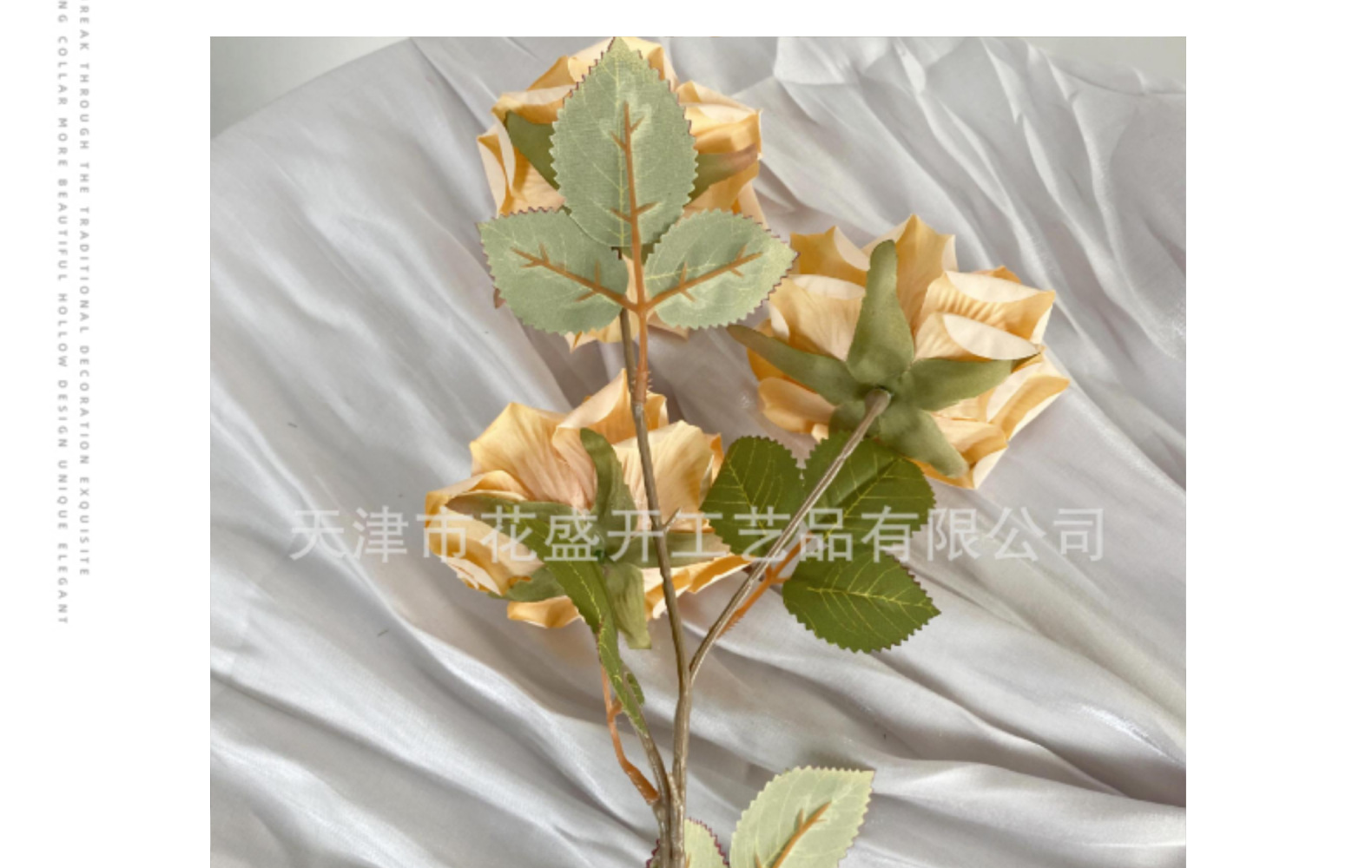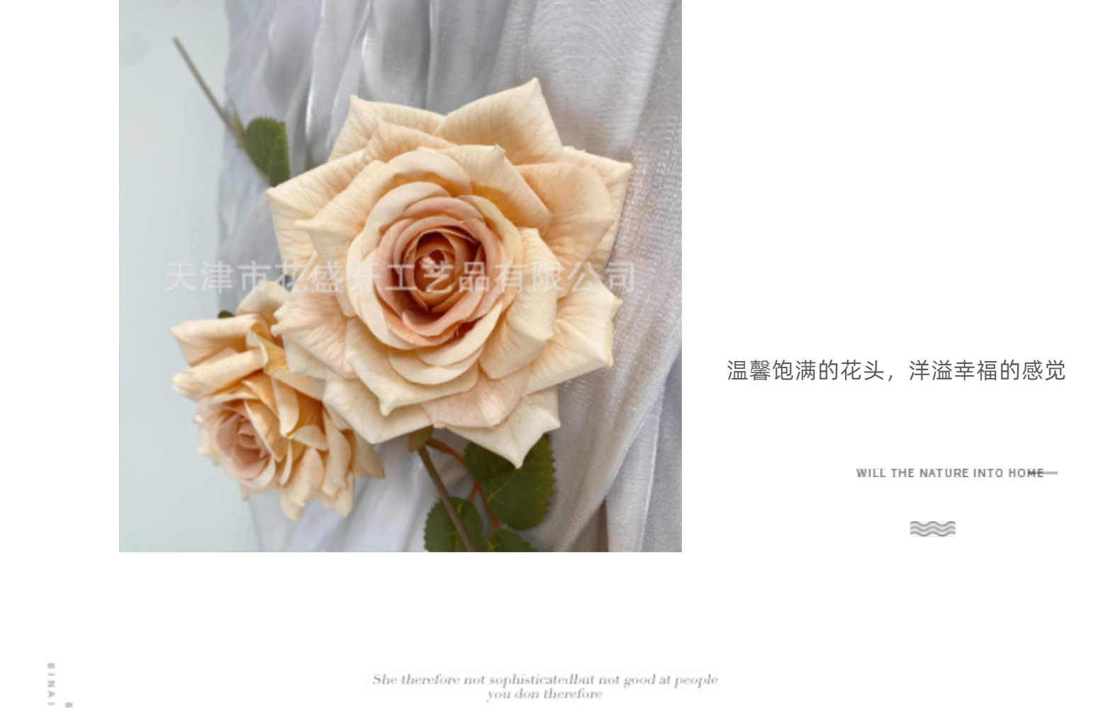 Net Red 3 Head Cappuccino Rose Simulation Flower Senior Wedding Decoration Home Soft Decoration Hotel Decoration Cross-Border