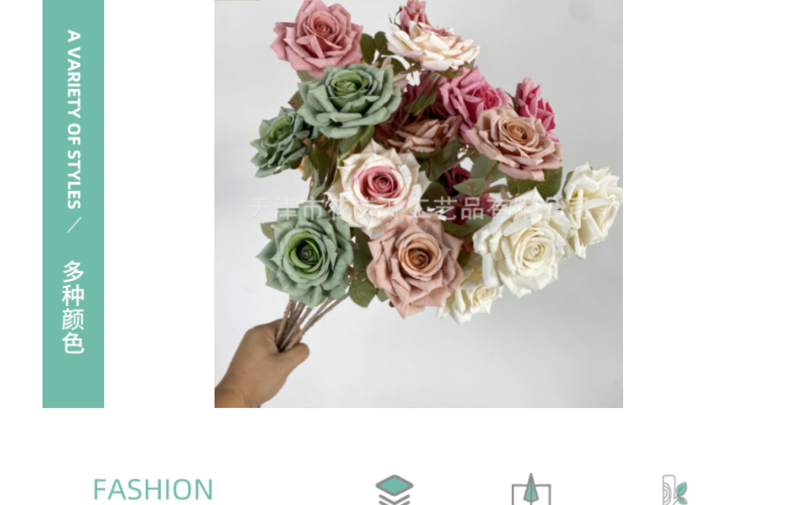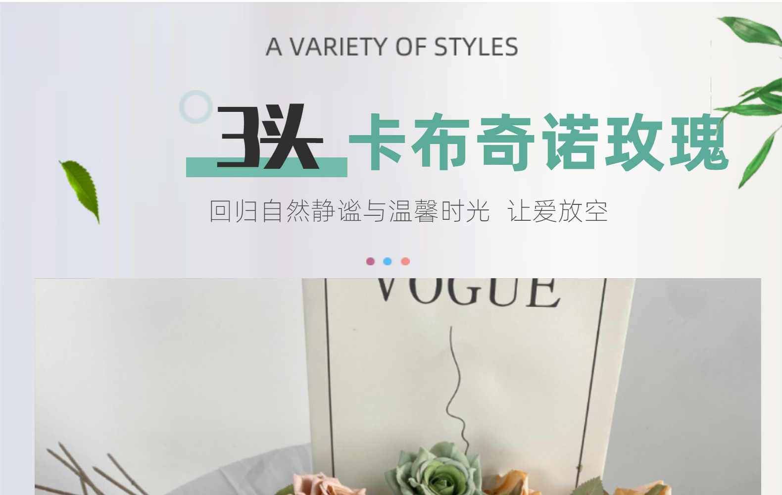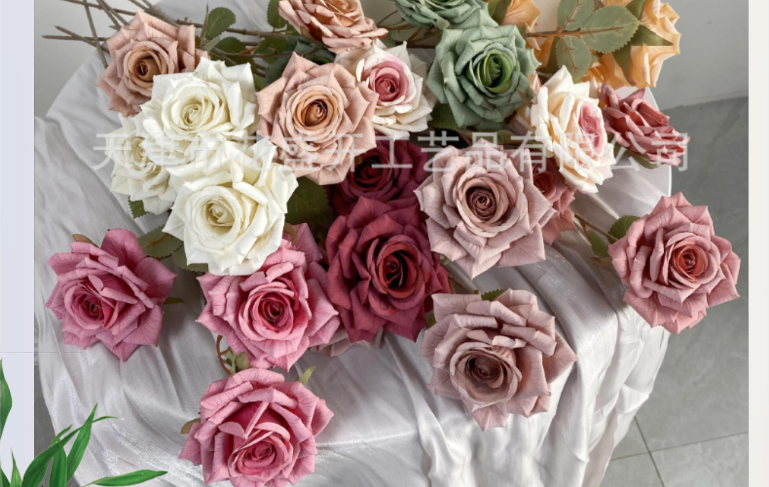 Net Red 3 Head Cappuccino Rose Simulation Flower Senior Wedding Decoration Home Soft Decoration Hotel Decoration Cross-Border